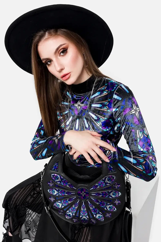 šÆļø SACRED ROSE SHOULDER BAG ā Gothic Rose Window Bag with Stained Glass Effect šŖ