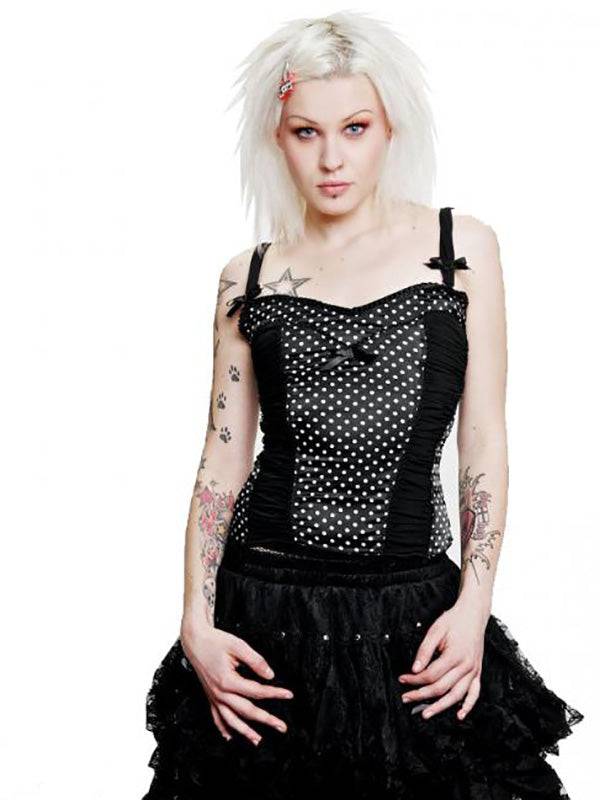 Black Cotton Top With White Polka Dots And Cute Bows - Queen of Darkness Style