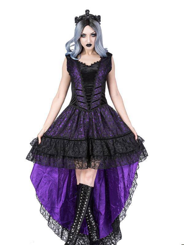 Poison Purple Dress With Vampire Collar And Back Zipper - Sinister Clothing - S is in bestelling en wordt verzonden zodra het weer op voorraad is