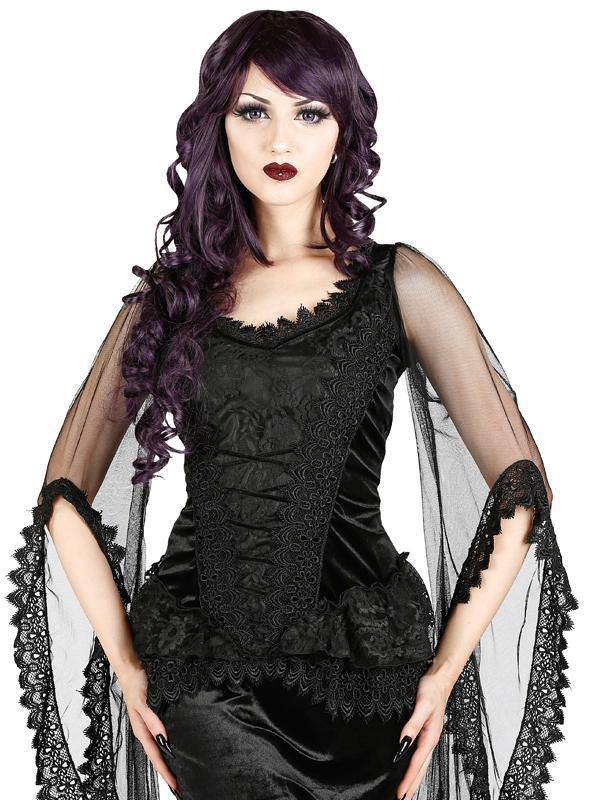Black Velvet Gothic Top With Mesh And Lace By Sinister Clothing - Unique Vintage Style