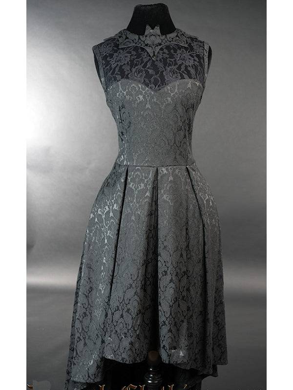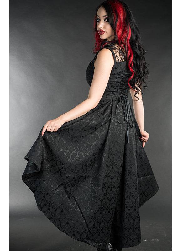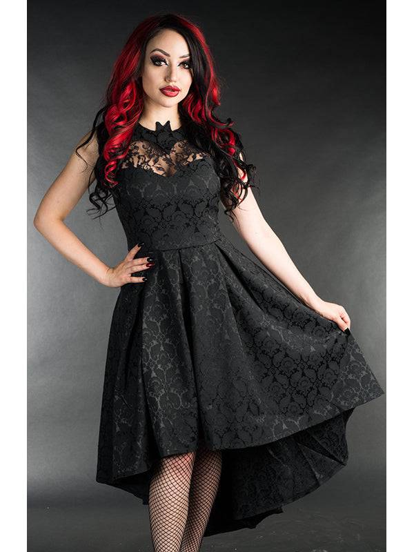 Dark Bat Gothic Dress with Lace and Laced Back - Unique Batwing Collar Design