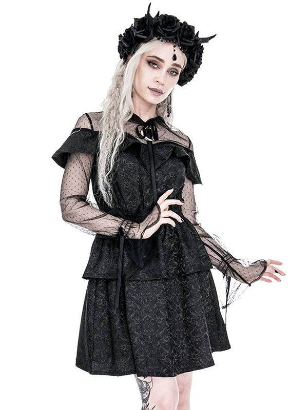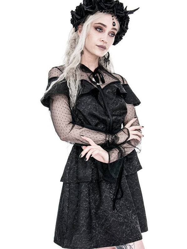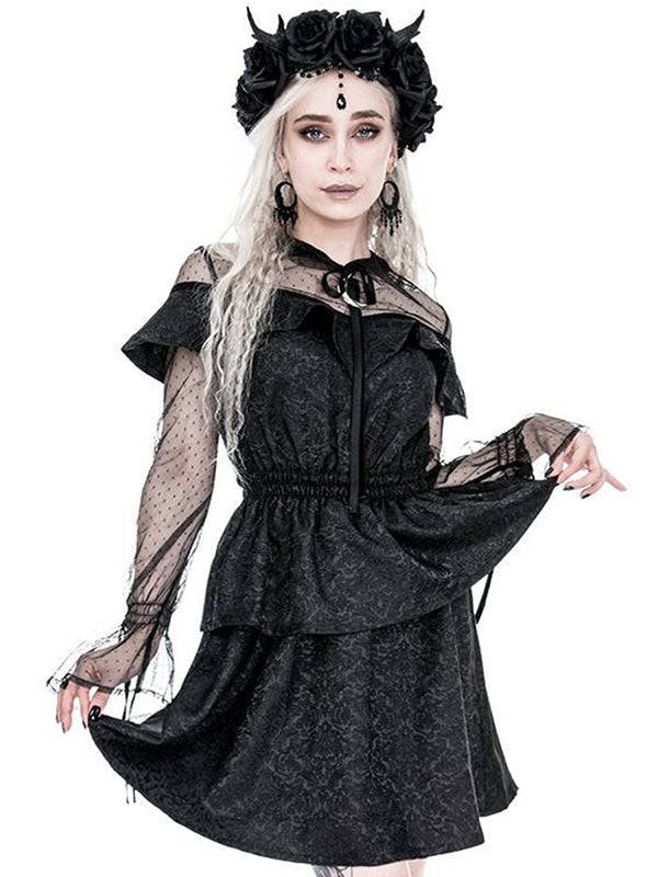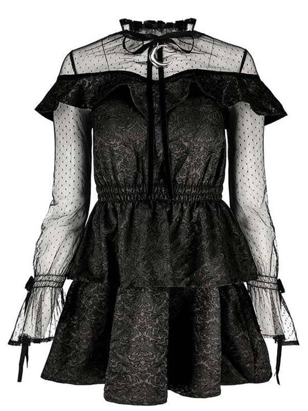 Restyle Zoe Jacquard Dress with Mesh Sleeves, Zip and Button Back, Elastic Waist - XS is in bestelling en wordt verzonden zodra het weer op voorraad is