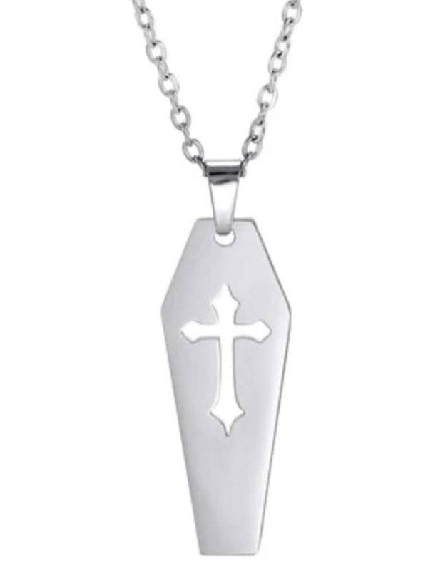 Stainless Steel Coffin Pendant Necklace - 60cm Chain with 1.2cm x 3cm Charm