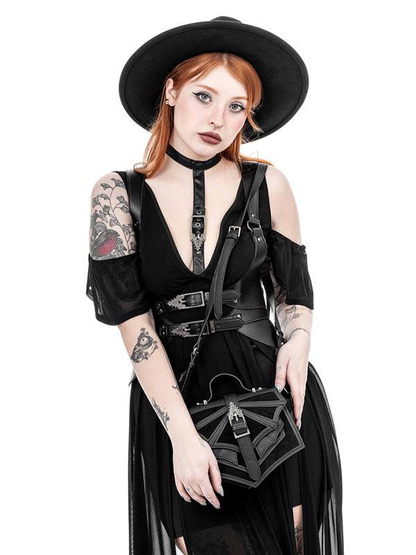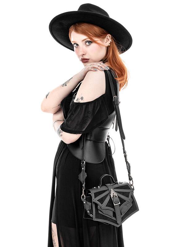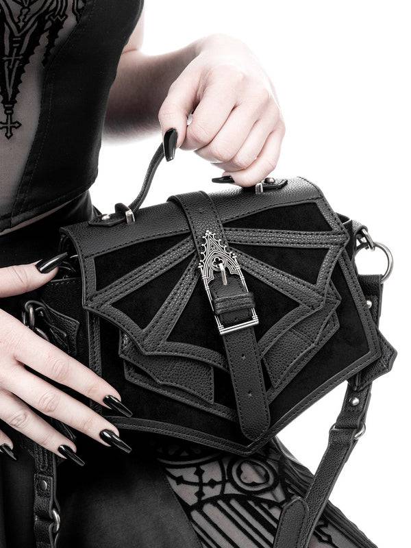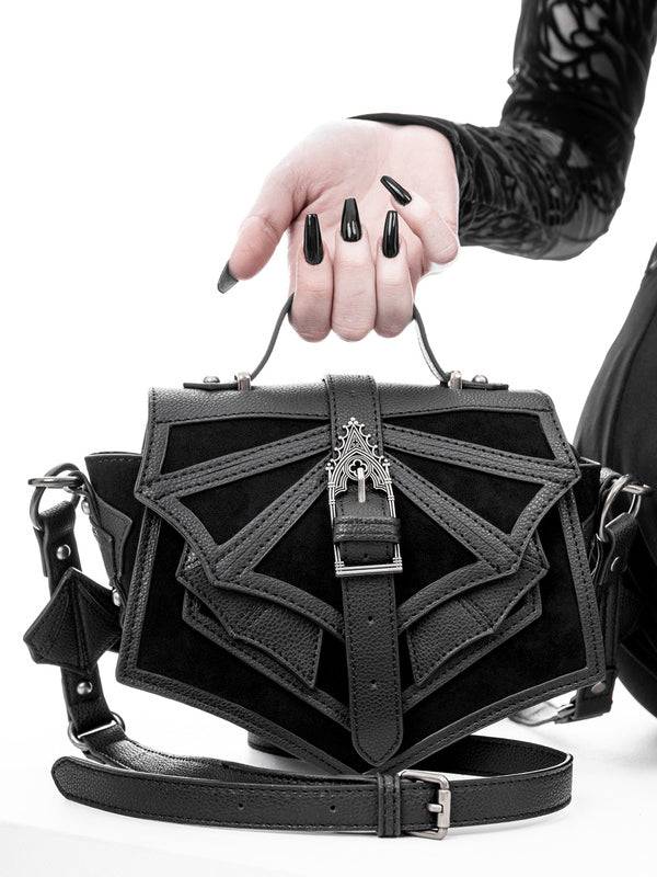 Mini-Gothic-Tasche mit 3D-Fledermausflügeln und einzigartiger antiker Schnalle - Vegane PU-Leder-Schultertasche