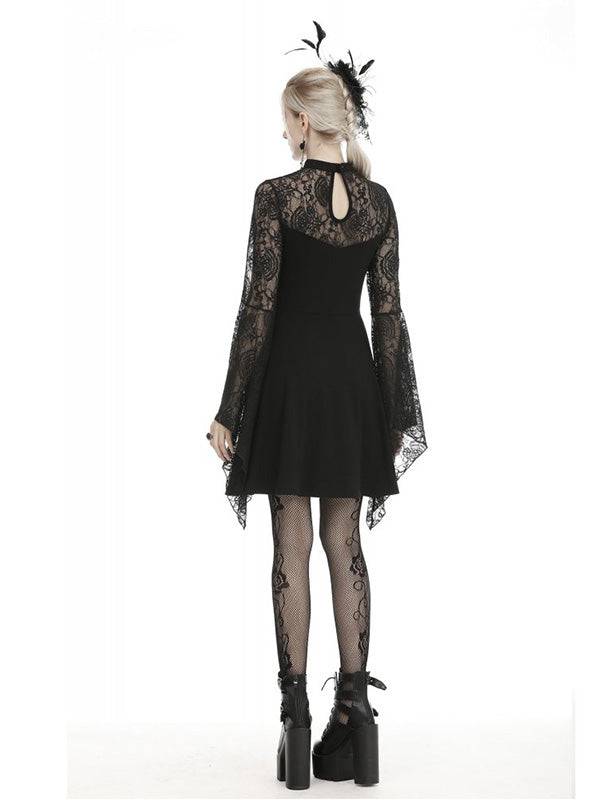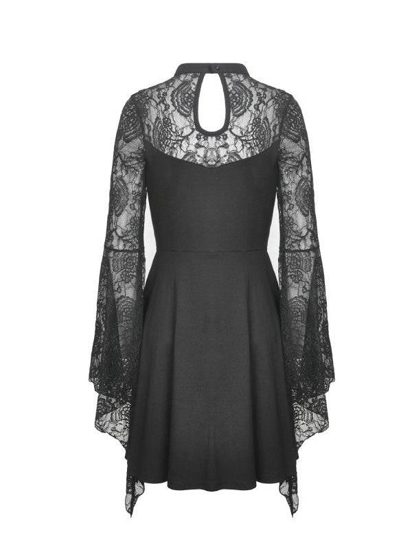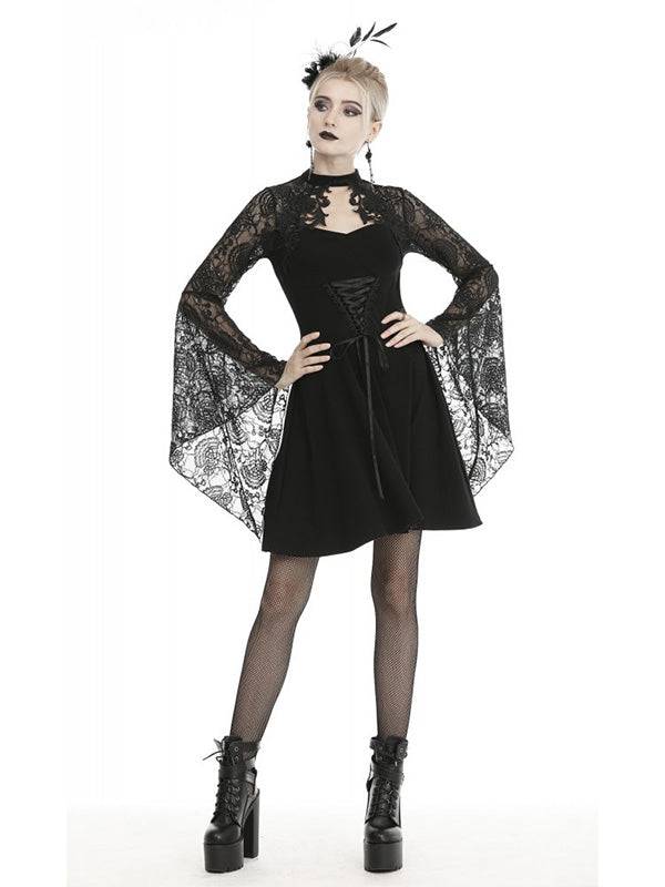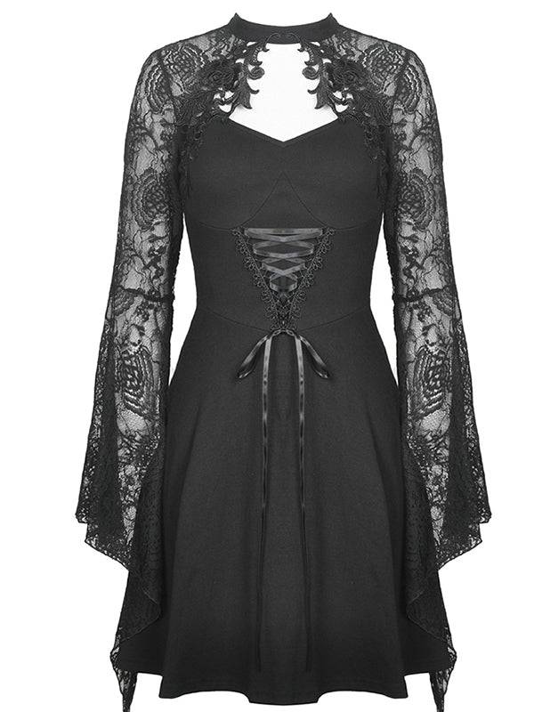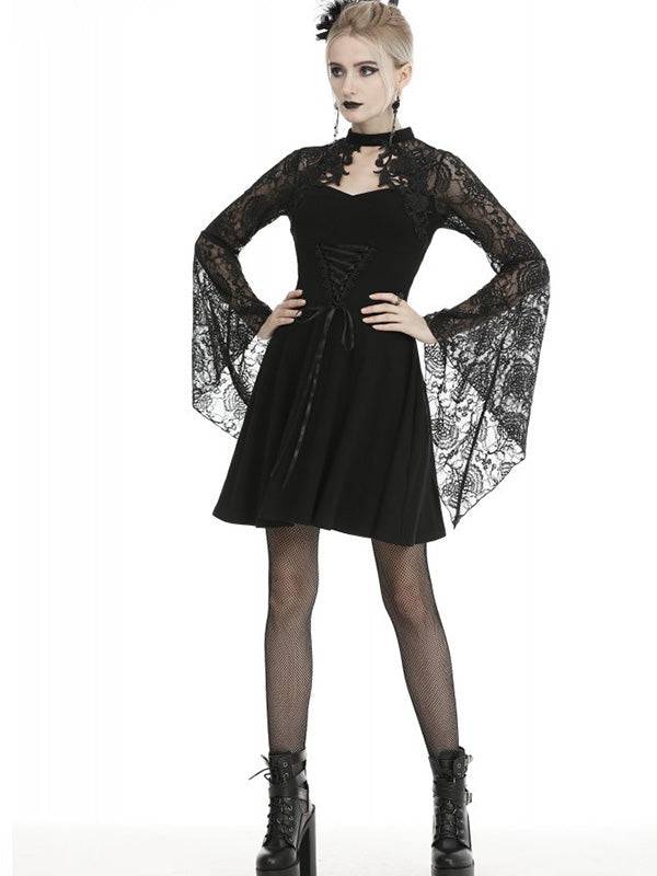 Dark In Love Cotton Dress With Lace Sleeves And Decorative Front Lacing
