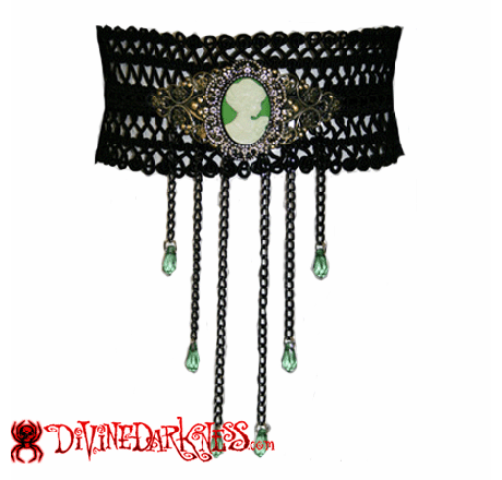 Handmade Green Cameo Choker with Droplet Beads from Divine-Darkness