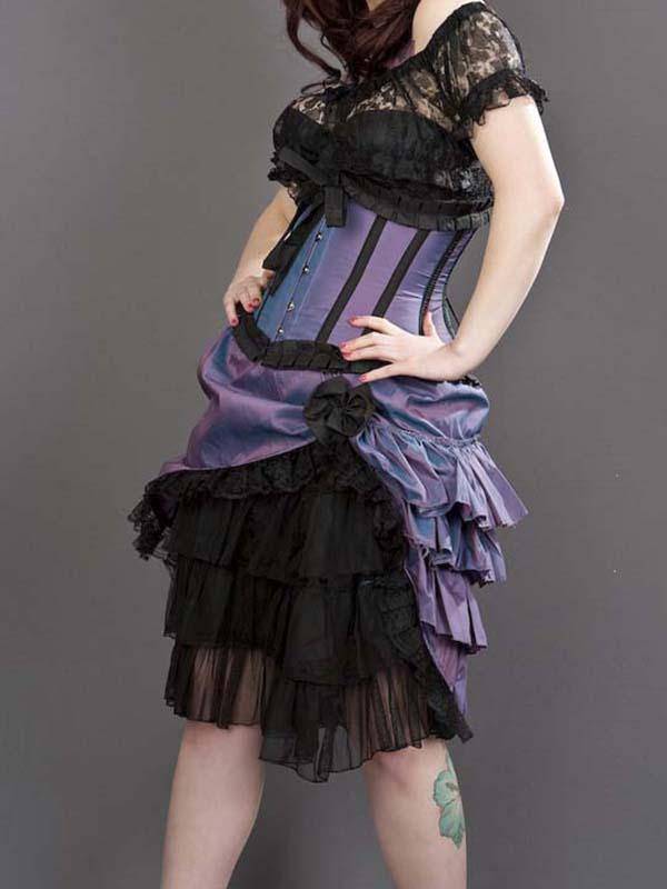 Paarse taffeta rok met zwarte mesh onderlaag. Elastische taille.