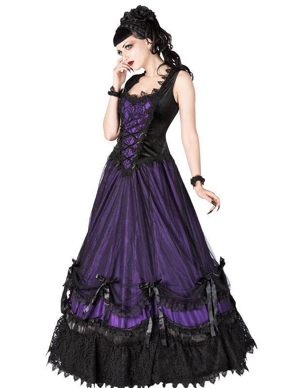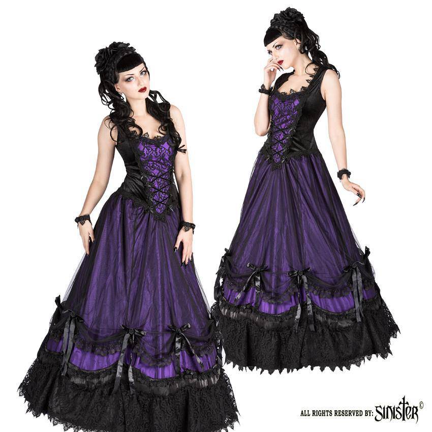 Sinister Clothing Purple Serenade Dress with Diamond Neckline and 3-Layer Skirt - S ist auf Lager und wird versandt, sobald es wieder verfügbar ist
