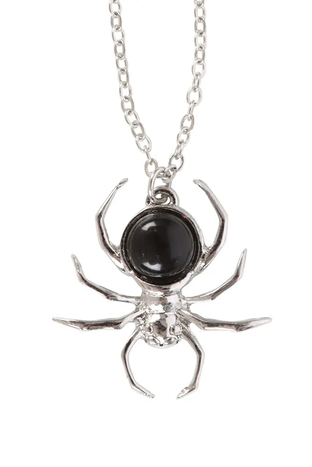 Add a little spooky to your style with this spider necklace crafted from stainless steel and featuring black obsidian details. Appearing as if dangling from a thin thread of web, this necklace is equal parts elegant and eerie.