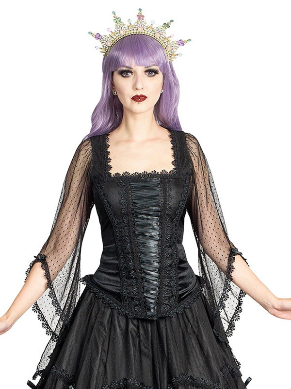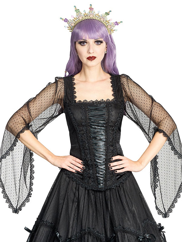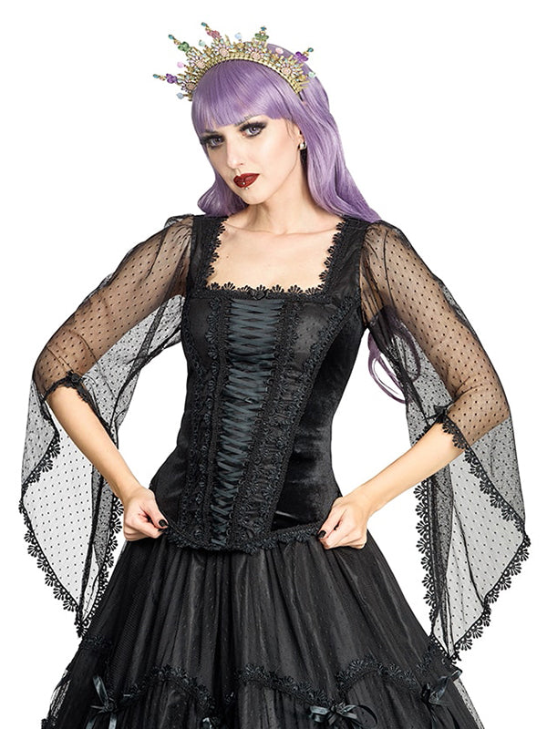 Elegant Gothic Velvet Top with Romantic Square Neckline and Luxurious Black Lace Accents