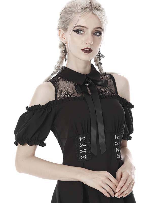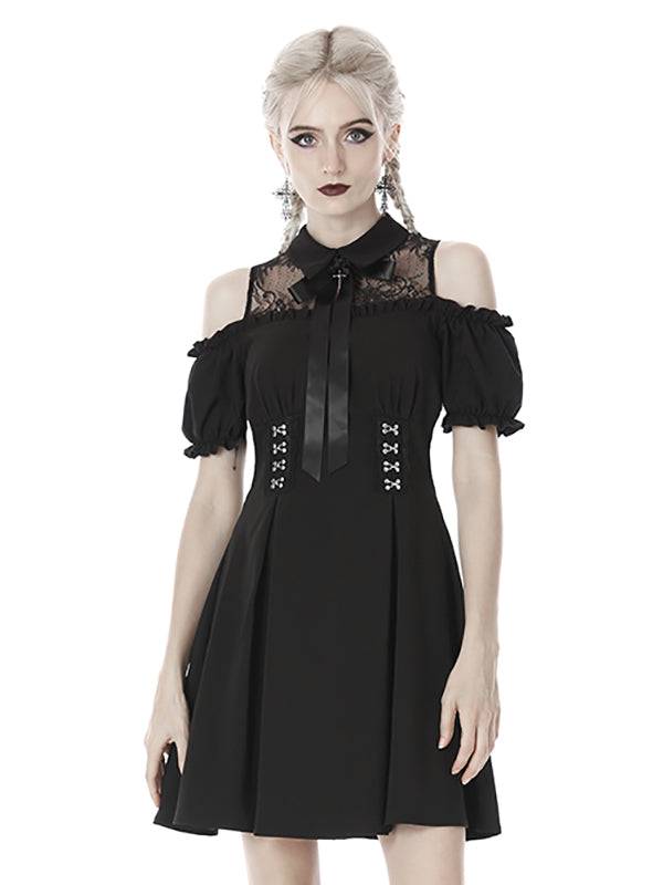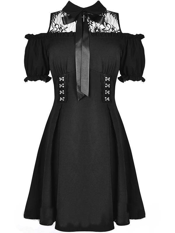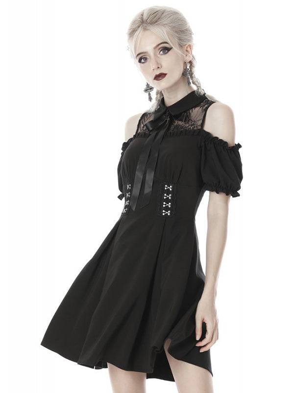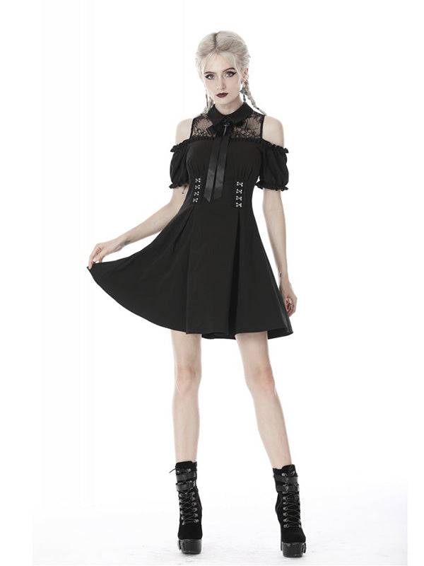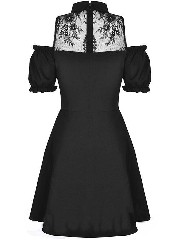 Dark In Love A-Line Melancholy Dress With Puff Sleeves And Zip Closure - S - Op voorraad ist auf Lager und wird versandt, sobald es wieder verfügbar ist