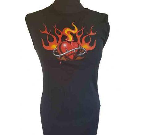 Black Sleeveless Cotton Top with Flaming Heart Print – Stylish Comfort by Spiral Direct