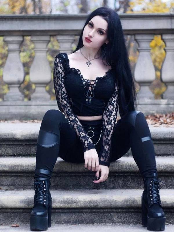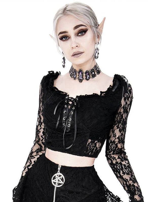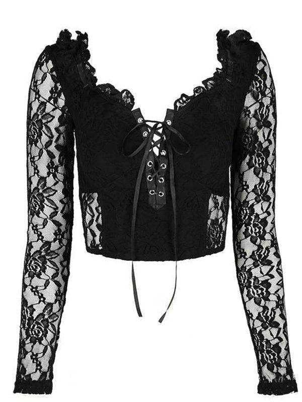 Top gemaakt van zacht kant en zwarte stof.