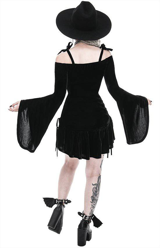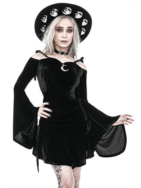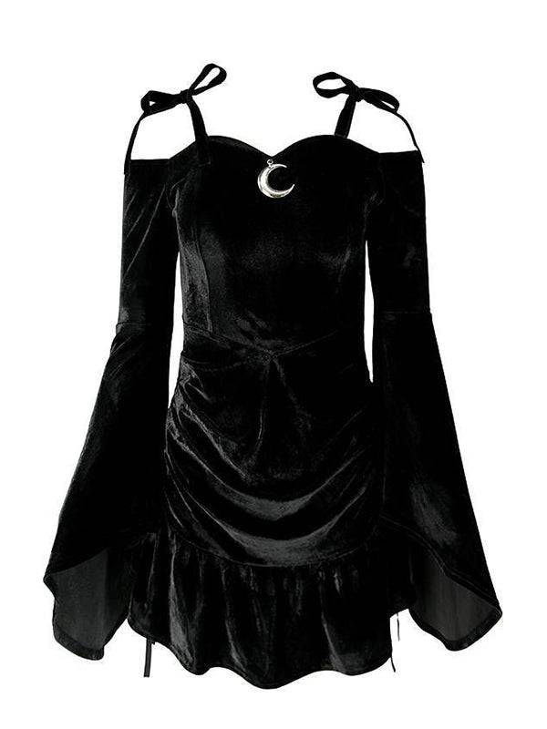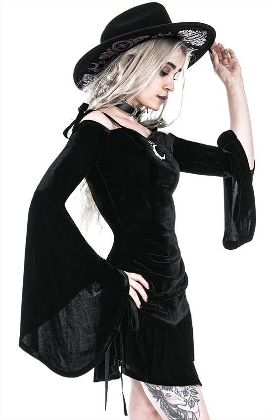 The deep sweetheart neckline will emphasize your feminine shapes. The metal crescent is a piece of jewelry, but you can choose any gothic jewelry with it and mix it to your heart’s content.