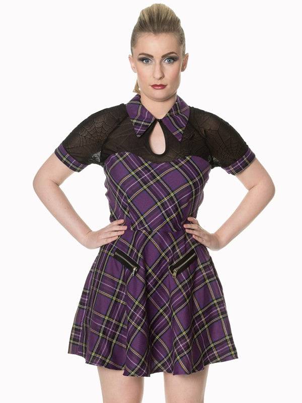 Spider Purple Tartan Dress - S - In stock is backordered and will ship as soon as it is back in stock.