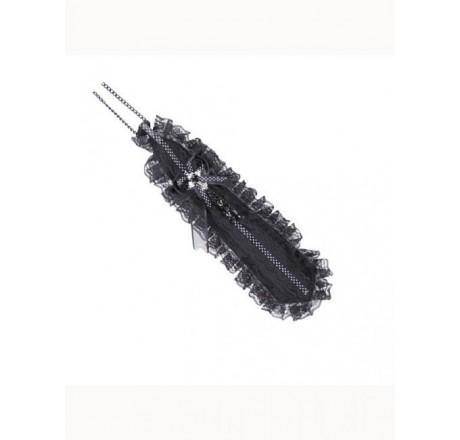 Black tie decorated with bow, lace and cross
