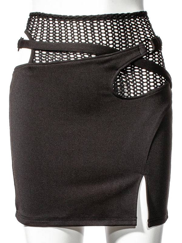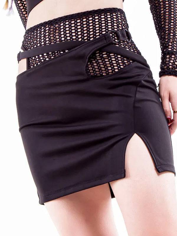 Featuring a sheer mesh construction, this mini skirt features a O-ring design, a side split, a high waist and a lace up back with adjustable laces.