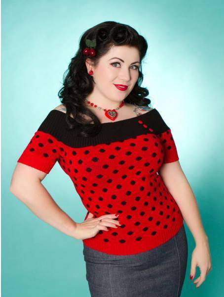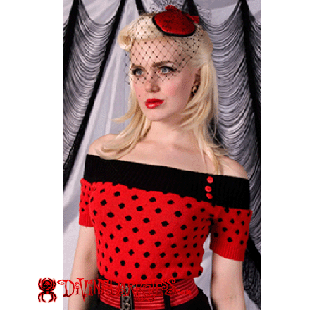 Red Polka Dot Top M/XL - Stylish Wide Black Neckline for Ultimate Comfort