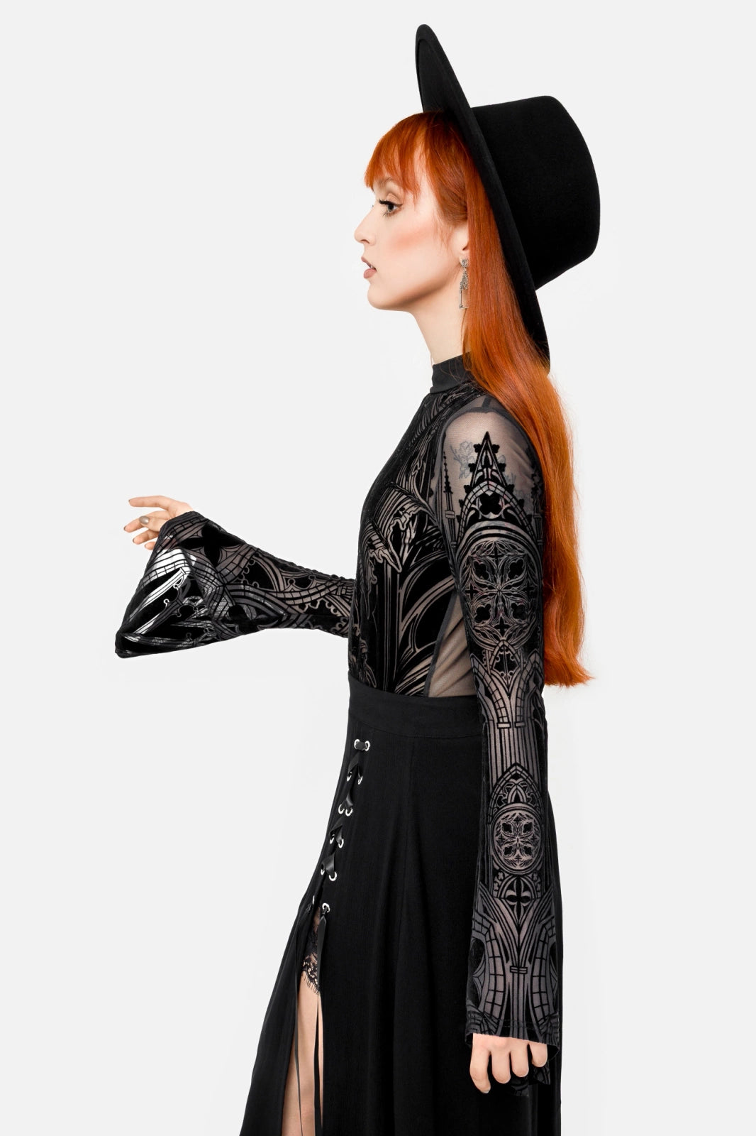 Gothic Dragon Bodysuit with Cathedral Print | Breathable Mesh 95% Nylon, 5% Spandex