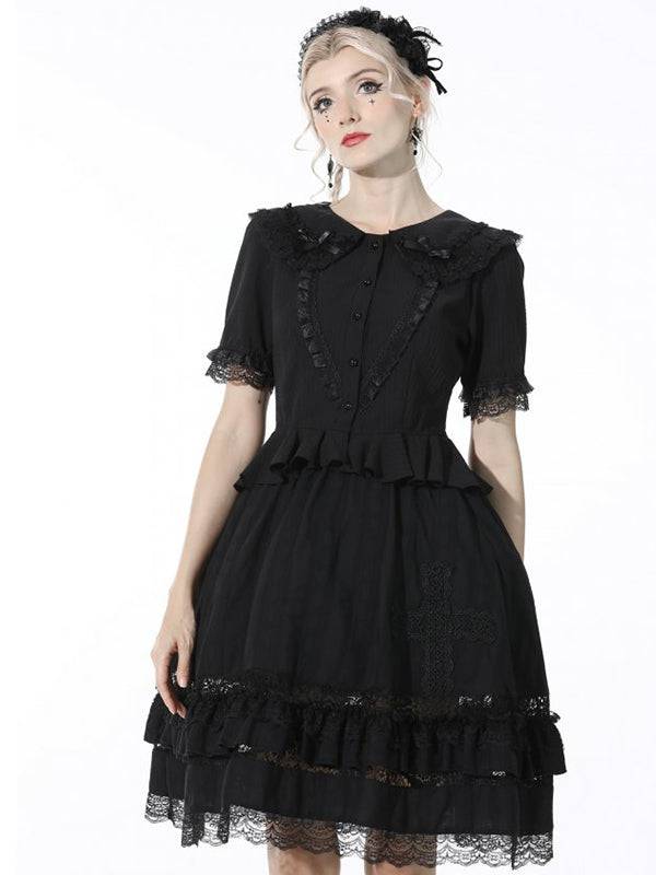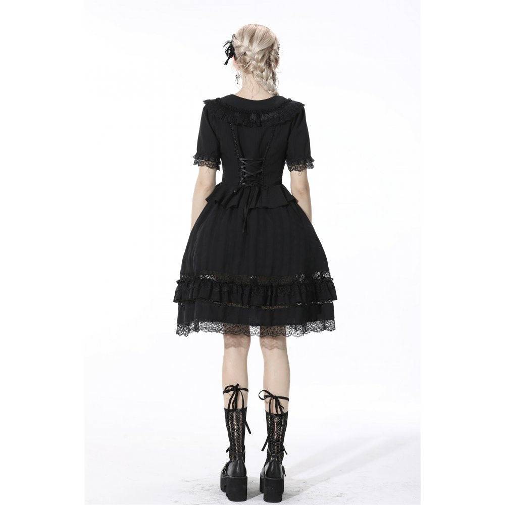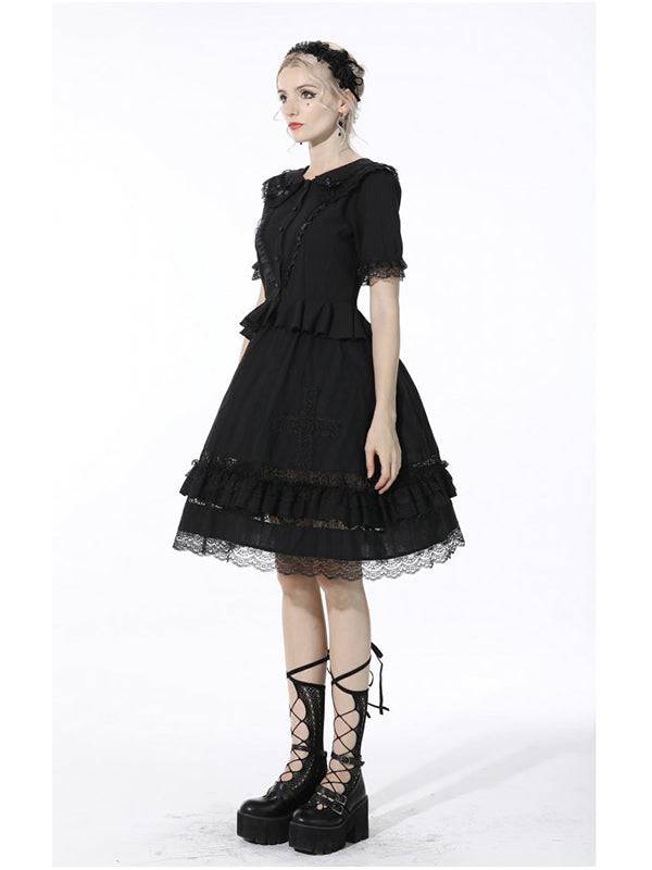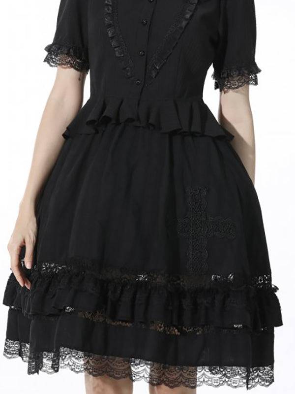 The light fabric makes it comfortable to wear. The hem of the skirt is trimmed with lace and ruffles. Elastic waistband.
