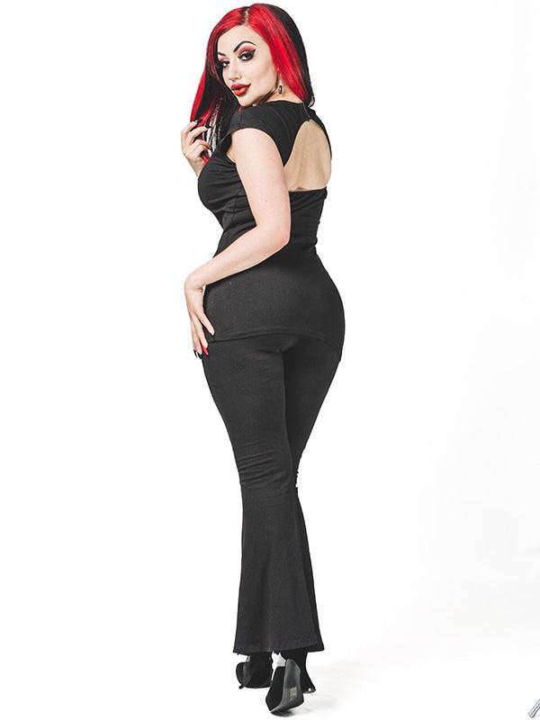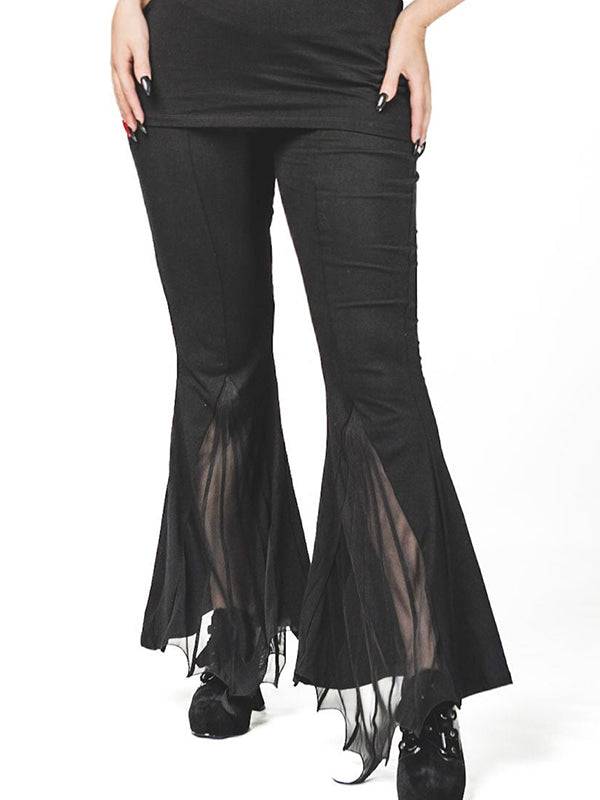 Gorgeous flared trousers featuring a soft waistband and a bat wing inspired mesh panel to the front of the flared cuffs.