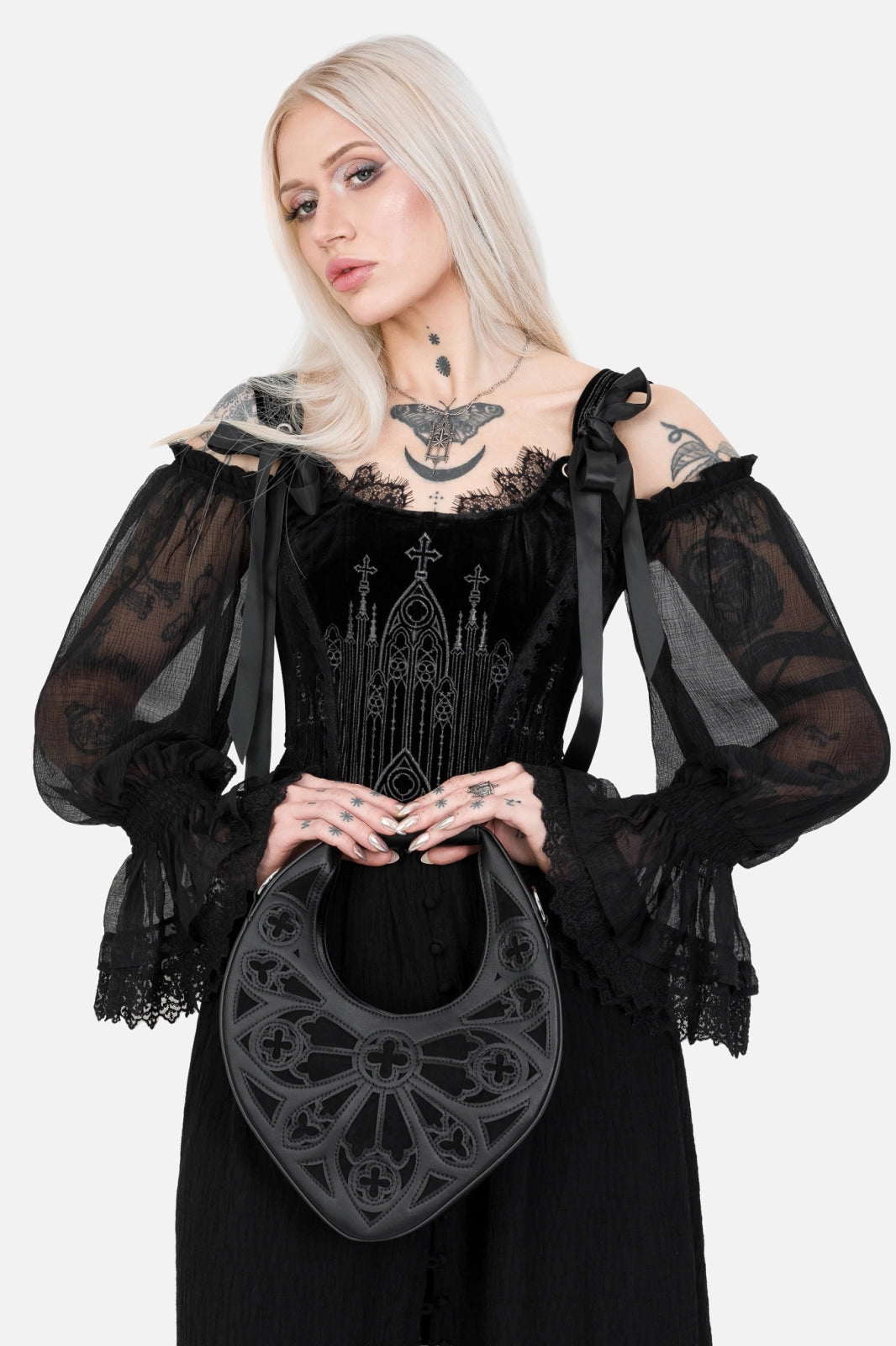 Structured and ornamental, this gothic cathedral bag feels more like an ornate jewel than a simple accessory. A statement piece for gothic fashion, dark alternative looks, and lovers of architectural-inspired style. Carry it as a talisman of elegance and shadowed beauty.