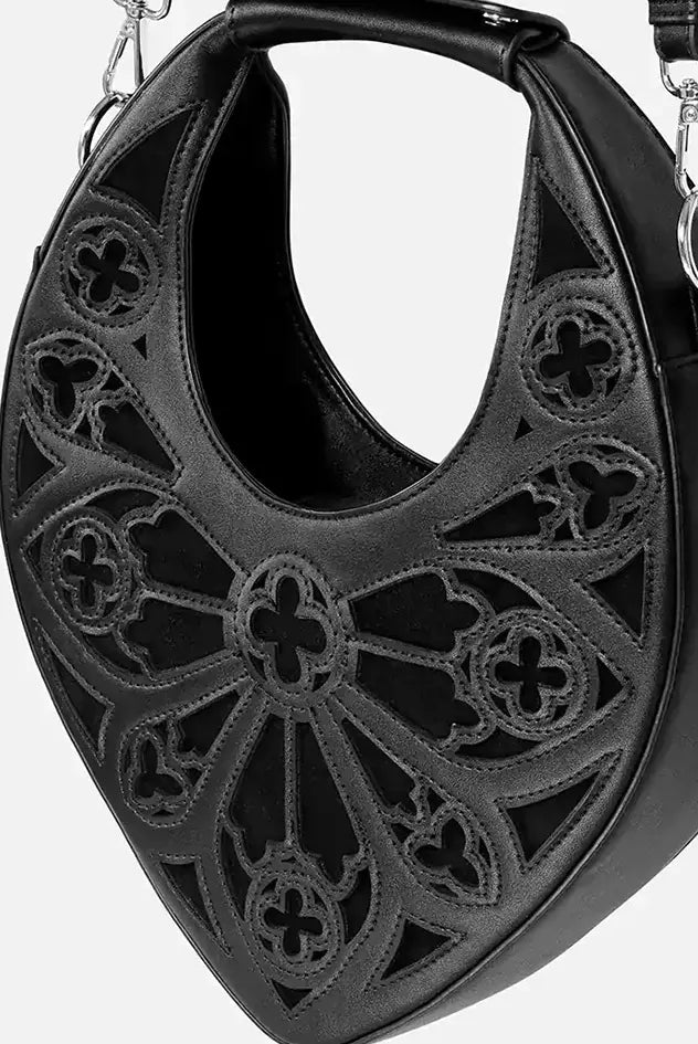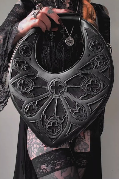 ⚔️ SPIRE CROSSBODY BAG – Gothic Black Bag with Rose Window Detailing 🖤🕯️