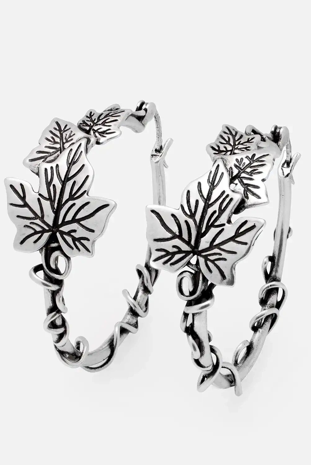 Tangled Vines Silver Hoop Earrings - Ivy Leaf Design for Nature Lovers & Forest Witches