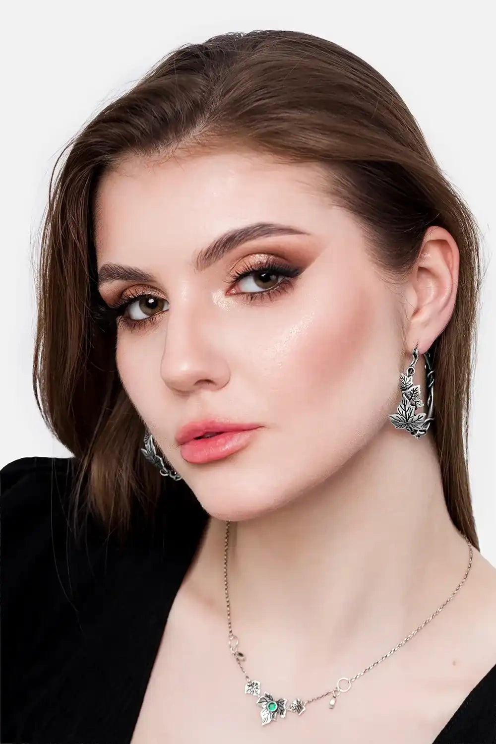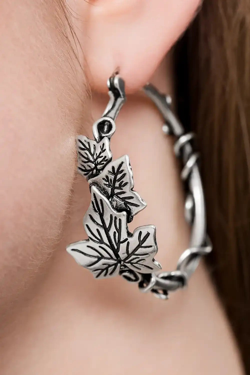 These silver leaf hoop earrings are made to enchant. 🌙 Delicate vines and ivy leaves wrap around each hoop. They blend gothic charm with natural elegance. A subtle statement for forest witches, dark romantics, and nature-inspired style. 🖤