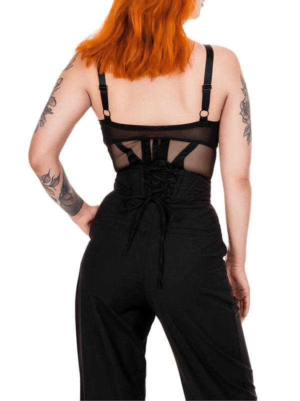 The top of this bodysuit features padded cups with additional straps, providing not only extra support but also adding charm. Adjustable straps.