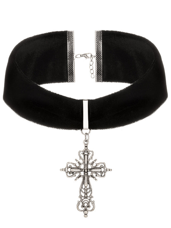 Le tour de cou en velours noir, orné d'un pendentif croix élégamment détaillé, est un accessoire indispensable pour tout gothique !