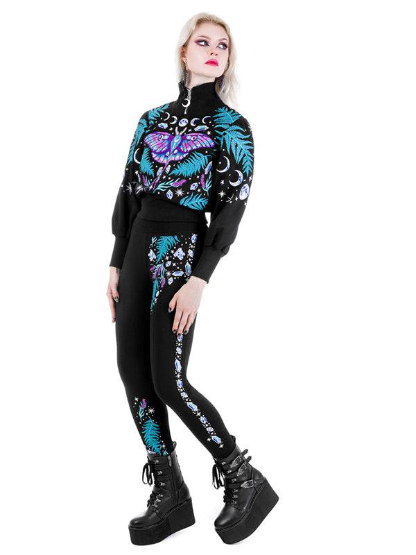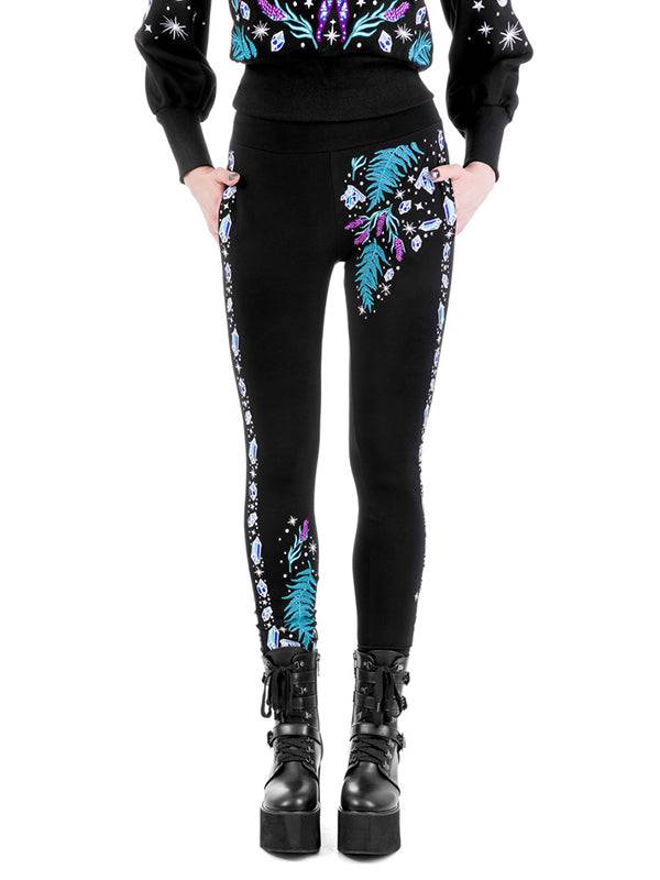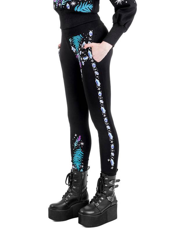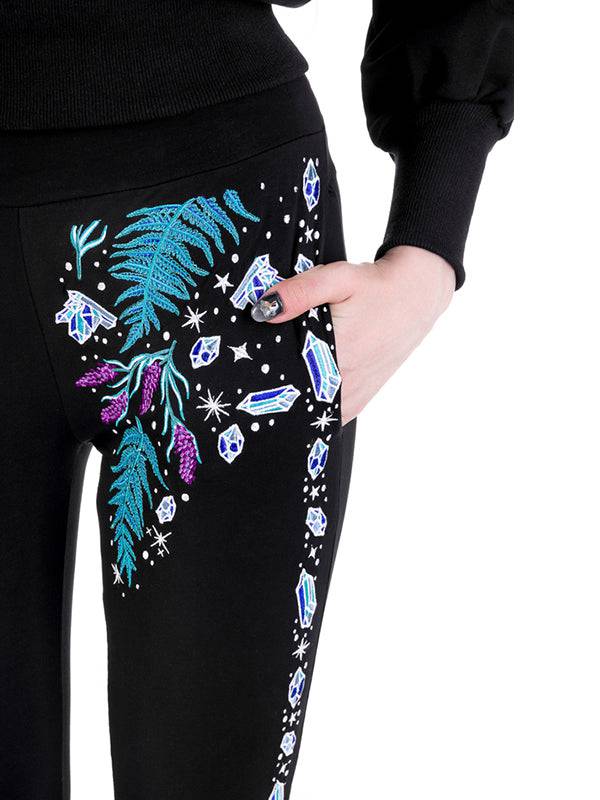 Broderie enchanteresse mettant en vedette des feuilles de fougère, de la lavande et des cristaux.
