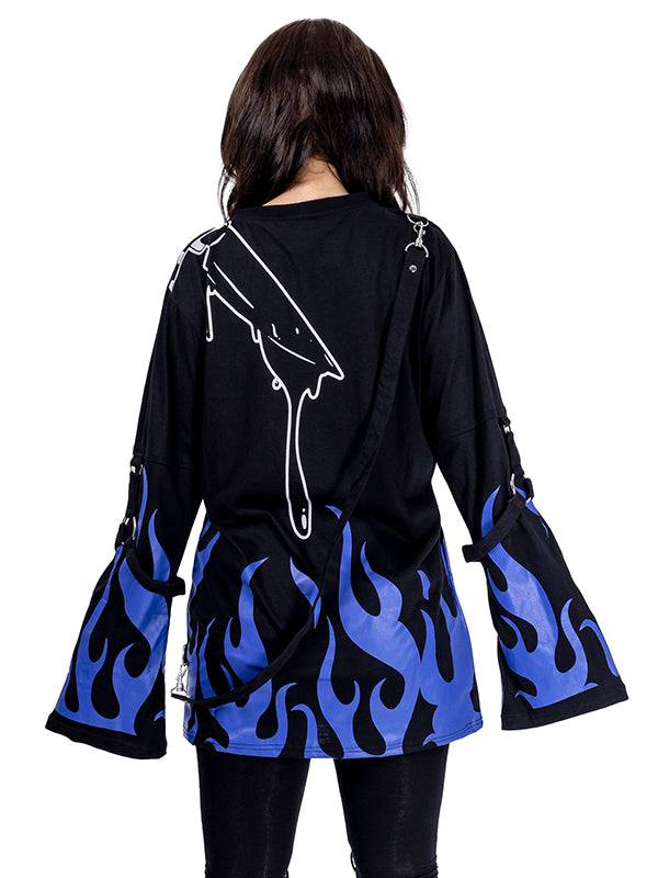 Haut manches longues en coton avec lanières au dos et sur les manches.