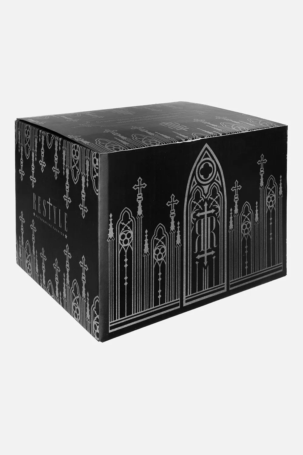✦ Gift-ready: Packaged in a decorated box with cathedral graphics – perfect for spooky season 🖤