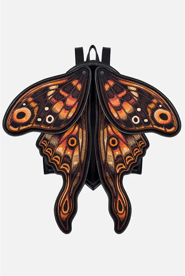 Have you ever been enchanted by old storybook illustrations of woodland creatures and autumn magic? Our whimsical 3D moth backpack captures that same nostalgic charm in deep shades of orange, gold, black, and brown. The fully embroidered wings feature layered tones and subtle gradients, reflecting the beauty of nature in a magical, lifelike way. This orange moth backpack brings a mystical, nature-inspired charm to any outfit.