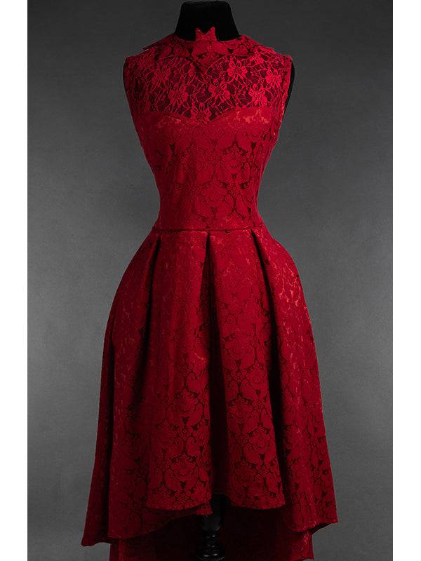 Belle robe avec décolleté en dentelle et col forme chauve-souris. Laçage au dos. Le tissu est légèrement élastique.