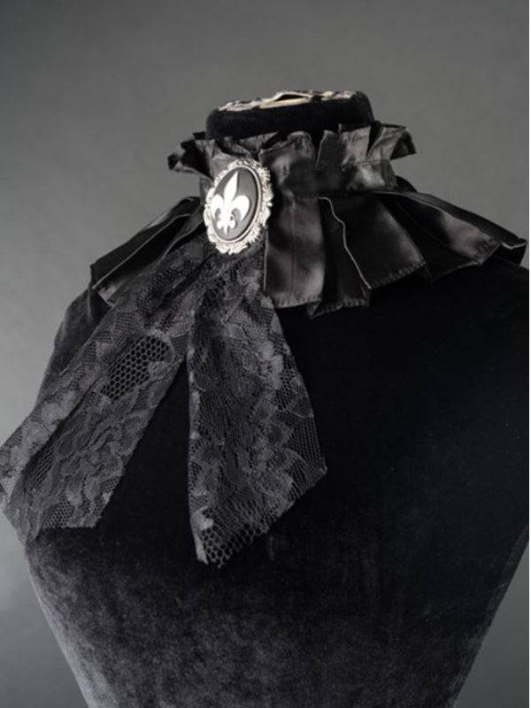 Choker versierd met zacht zwart kant en satijn. Verstelbare pasvorm.