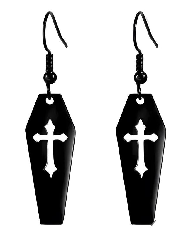 Unique Black Stainless Steel Coffin Earrings - 1.2cm x 3cm Bold Design for Stylish Statement