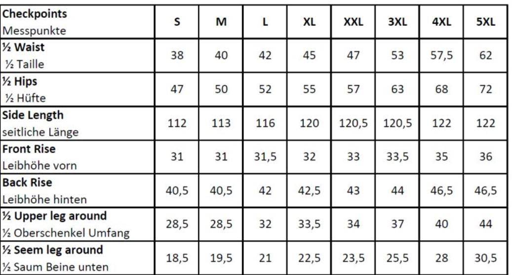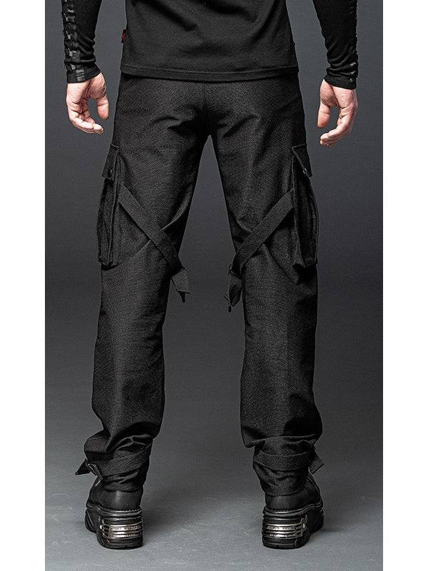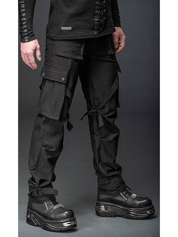 Broek met banden, gespen en grote zakken.