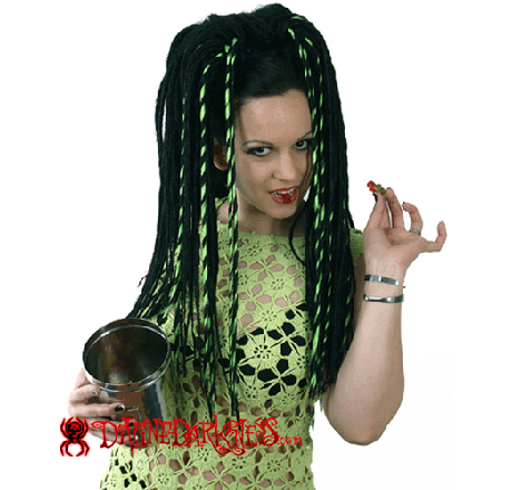 23-24 Inch Synthetic Dread Twisted Hairpiece in Black/Green - Easy Clip-On Style for Instant Volume