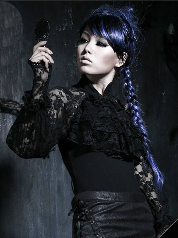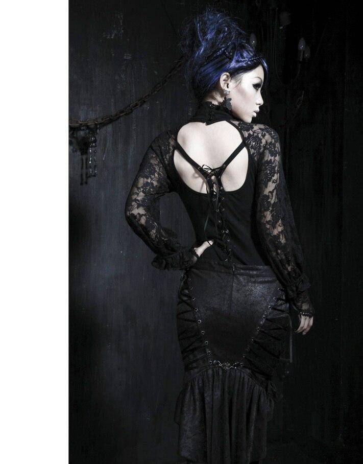 Zwarte Gothic stijl top met kant, achterkant is open met veters. De perfecte uitgaans top.