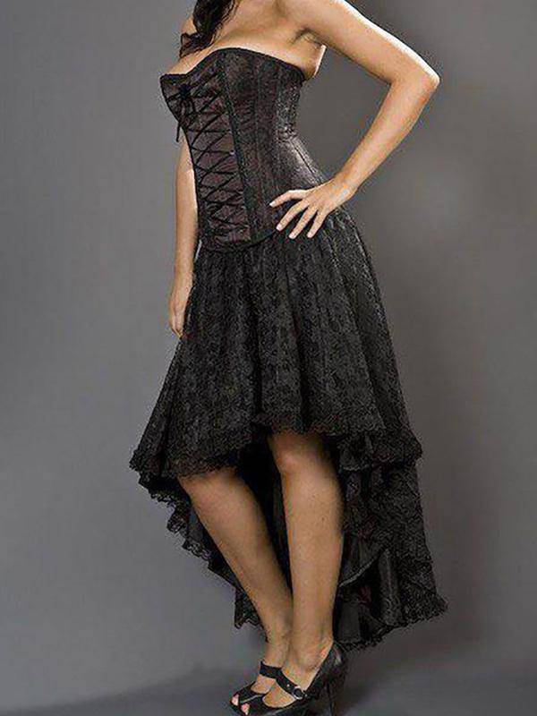 Burleska Elizium Satin And Lace High-Low Skirt With Elastic Waistband - Stunning Formal Wear