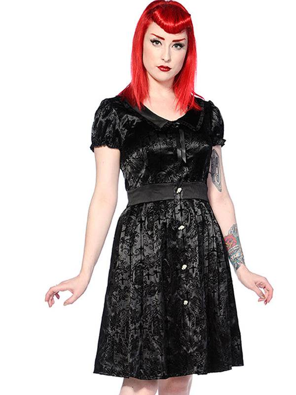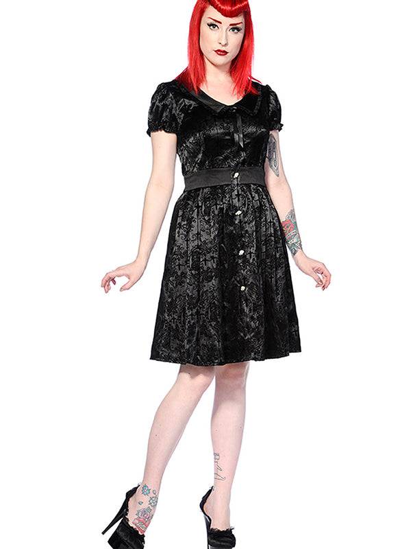 Banned Ivy Dress | 100% Polyester with Unique Cameo Buttons & Lace-Up Back Detail - M - Op voorraad is in bestelling en wordt verzonden zodra het weer op voorraad is