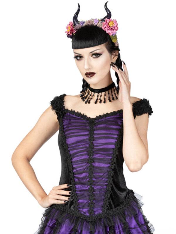 Velvet Satin Top With Diamond Neckline And Elastic Shoulder Straps - Sinister Clothing