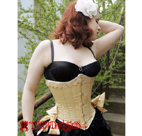 Underbust steelboned satijn corset in creme. Ook in zwart.