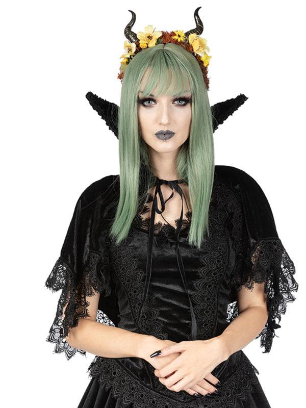 Velvet Vampire Collar Cape With Venetian Lace & Large Bow - One Size